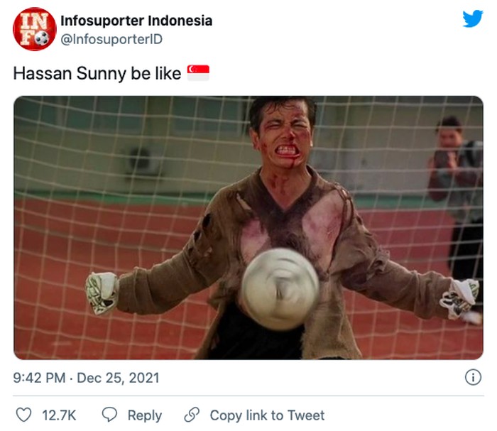 Meski laga Piala AFF 2020 Indonesia vs Singapura dimenangkan oleh Indonesia dengan skor 4-2, para pemain Singapura pun banjir pujian, terutama sang kiper Hassan Sunny. Foto: Twitter