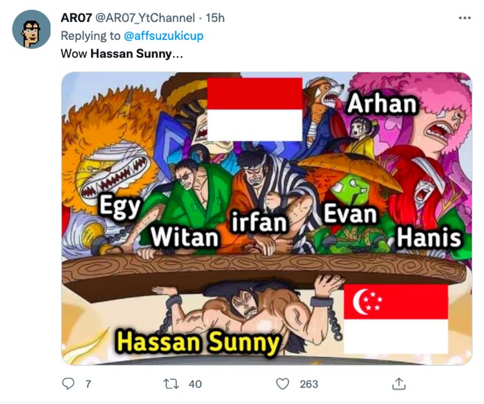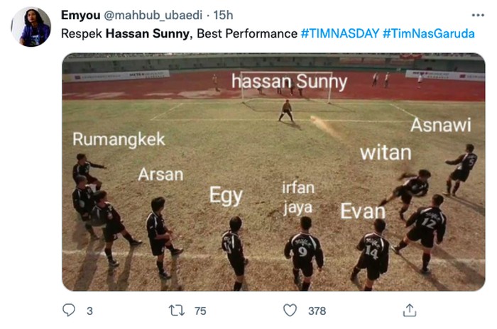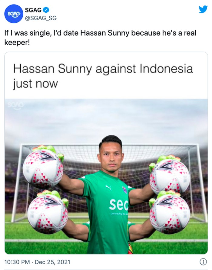 Netizen menilai kiper Singapura Hassan Sunny layak jadi Man of The Match di laga Piala AFF 2020 Indonesia vs Singapura. Berbagai meme tentangnya bertebaran.