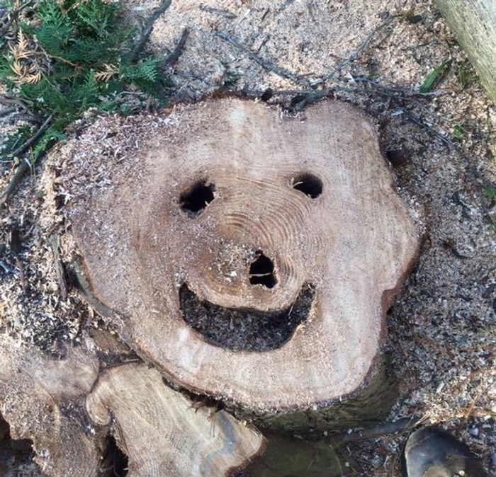 Papan kayu yang tampak seperti wajah anjing. Foto: Brightside