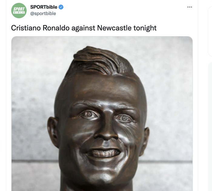 Ronaldo disindir tampil ala kadarnya lawan Newcastle, seperti patungnya saja. Foto: Twitter