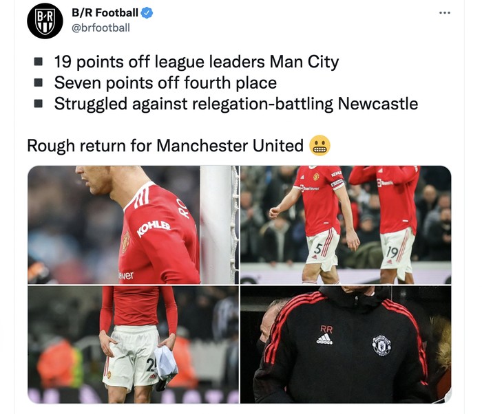 Nasib MU belum juga memabik, ketinggalan 19 poin dari pemuncak klasemen yaitu Manchester City, 7 poin jaraknya dari posisi 4 dan kewalahan lawan Newcastle yang terancam degradasi. Foto: Twitter