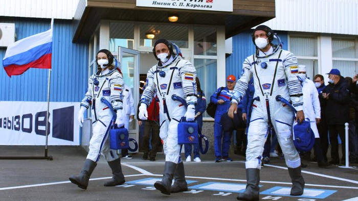 Β Dipimpin oleh kosmonaut veteran Anton Shkaplerov, awak Rusia meluncur dengan kendaraan luar angkasa Soyuz MS-19 dalam misi selama 12 hari di Stasiun Luar Angkasa Internasional (ISS) untuk syuting adegan film berjudul 'The Challenge'. Mereka pun telah kembali ke bumi pada bulan Oktober lalu.Β Roscosmos Space Agency via AP.