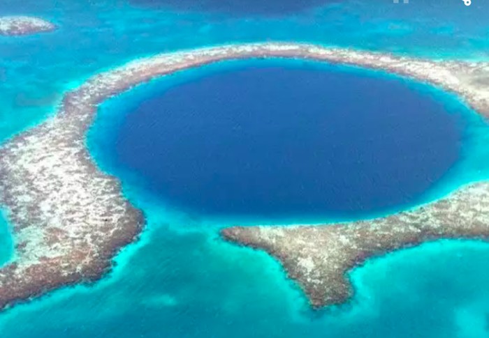 Great Blue Hole, Belize. Dikenal juga sebagai sinkhole terbesar di dunia. Lubang ini berdiameter 300 meter dengan kedalaman sekitar 125 meter. Foto: Times of India