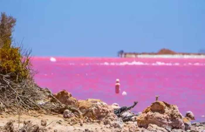Danau Hillier, Australia. Tampak seperti permen karet, danau ini seperti tidak nyata. Warna pink pada air danau hingga saat ini masih menjadi misteri. Foto: Times of India