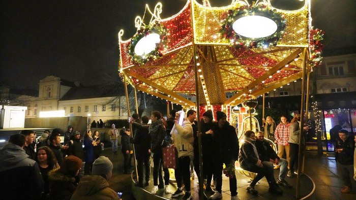 Orang-orang merayakan Tahun Baru di Warsawa, Polandia, Sabtu, 1 Januari 2022. AP/Czarek Sokolowski