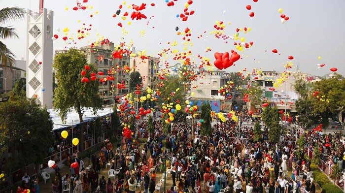 Umat Kristen India melepaskan balon untuk merayakan Tahun Baru setelah berdoa di sebuah gereja di Ahmedabad, India, Sabtu, 1 Januari 2022. AP/Ajit Solanki
