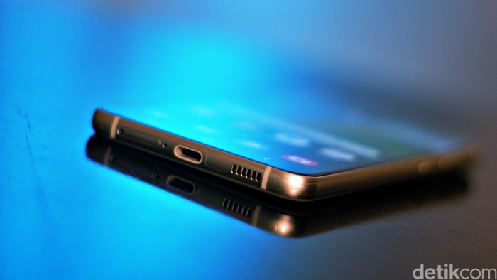 Di bagian atas terdapat punch hole yang menjadi rumah bagi kamera 32 MP. Foto: Adi Fida Rahman/detikINET