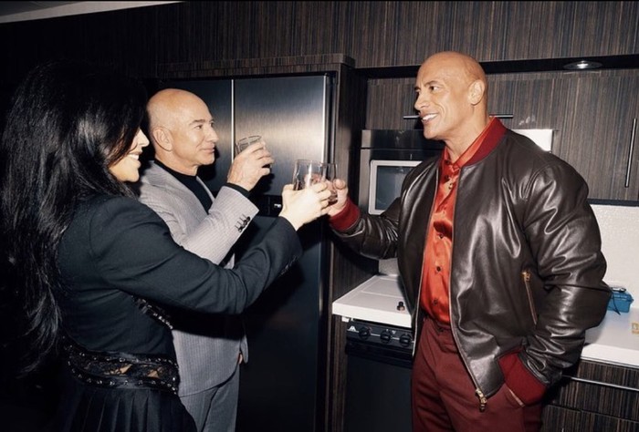 Sanchez dan Bezos mencoba minuman anggur produksi perusahaan The Rock. Foto: Instagram
