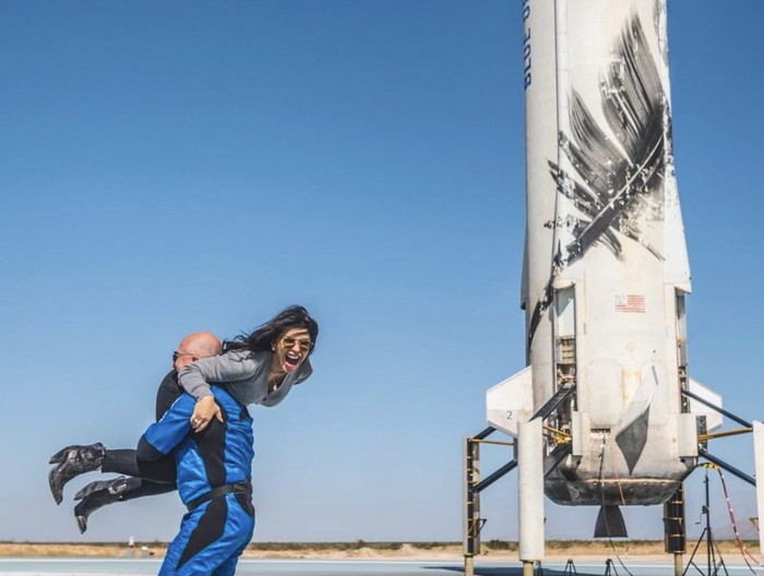 Lauren Sanchez dan Jeff Bezos tak dapat menutupi kegembiraannya saat itu lantaran Bezos berhasil mencapai ambisinya sampai ke luar angkasa dan melihat Bumi. Foto: Instagram