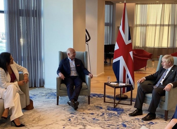 Lauren tampak mendampingi ketika Bezos berbincang dengan Perdana Menteri Inggris, Boris Johnson. Foto: Instagram