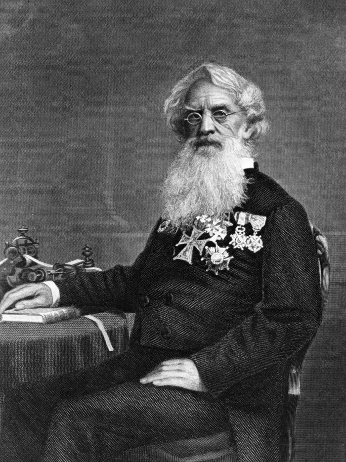 Foto portrait Samuel Morse yang diambil sekitar tahun 1865. Morse dilahirkan pada 27 April 1791 di Charlestown, Massachusetts . Selain penemu telegraf dan sandi morse, ia juga seorang pelukis. Karya lukisannya bergaya klasik Rennaisance. (Photo by Three Lions/Getty Images)