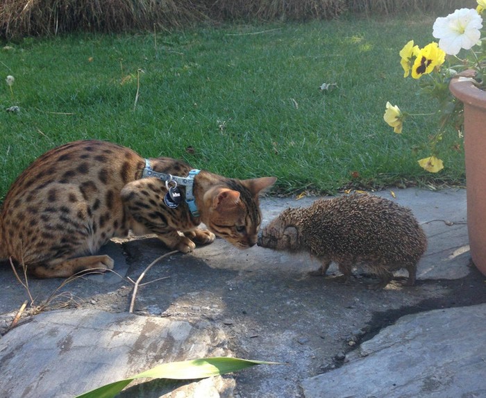 Si kucing dan ular pun bisa akur. Foto: Brightside