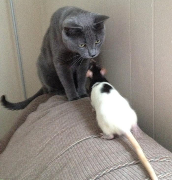 Setiap pagi saling bersapa anjing dan si tikus kecil. Foto: Brightside