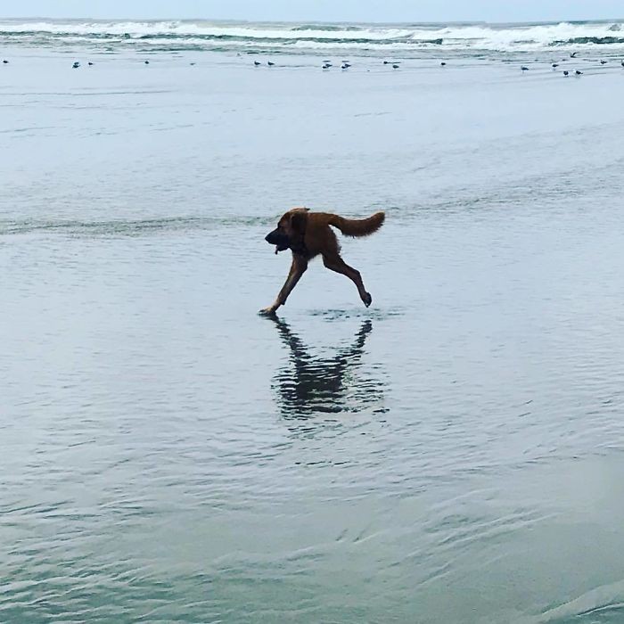 Niat hati biar foto anjingnya berlari di pantai terabadikan dengan baik, malah jadi gagal begini. Foto: rigbyrescue via Bored Panda