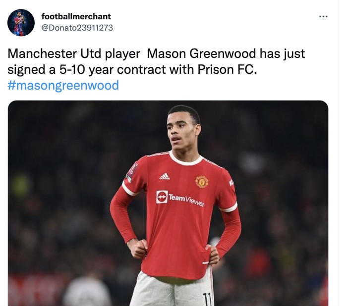 Menurut netizen ini, Mason Greenwood telah menandandatangani kontrak 5 sampai 10 tahun dengan Penjara FC dari MU. Foto: Twitter