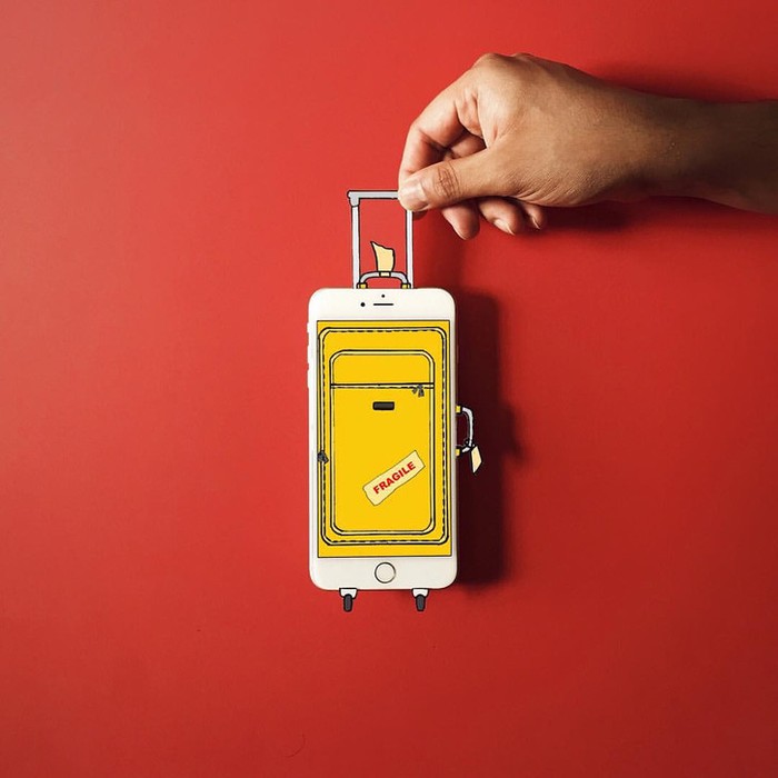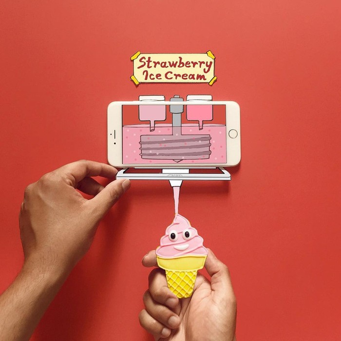 Jadi dia mengembangkan sebuah teknik yang dia sebut "phone framing" menggunakan potongan kertas dan layar iPhone dalam rangka menciptakan ilusi optikal menggemaskan, yang bermain-main dengan batasan layar sebuah ponsel.Β Foto: Instagram/Anshuman Ghosh