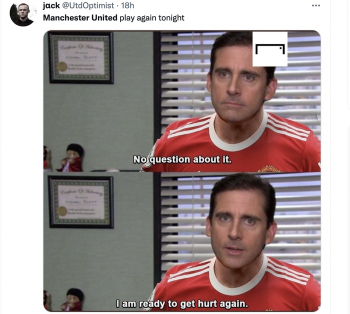 MU sudah ungguk kala pertandingan baru berjalan 18 menit tapi akhirnya ditahan imbang sehingga bikin fans jadi gregetan. Foto: Twitter