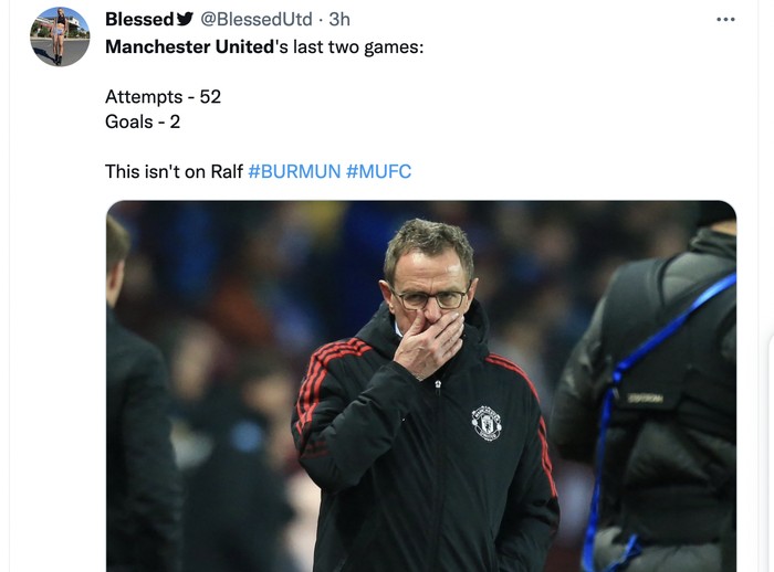 Akun resmi MU coba menenangkan suporter. "Bukan hasil yang pantas Anda dapatkan, para fans. Terimakasih selalu mendukung dengan luar biasa," tulis mereka. Foto: Twitter