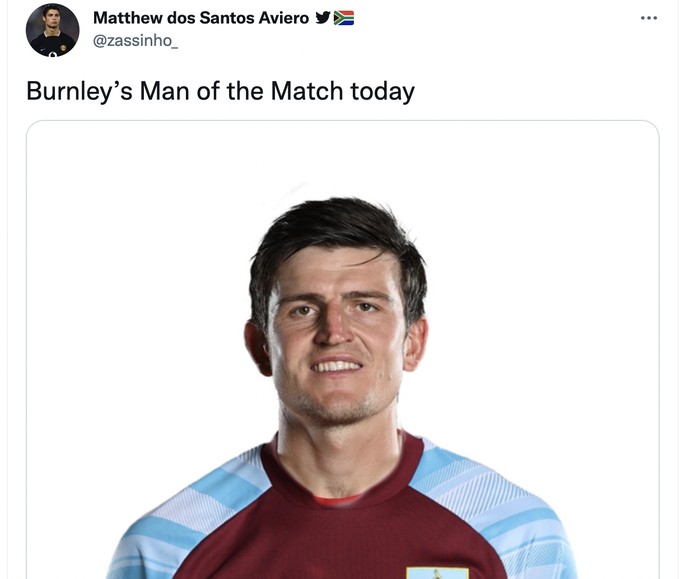 Harry Maguire bahkan jadi trending di Twitter lantaran dinilai sebagai biang kerok MU imbang karena dia terlalu lambat mengawal pemain depan Burnley. "Bisakah kita semua setuju bahwa Maguire adalah rekrutan MU yang paling buruk?" tulis netizen ini. Foto: Twitter