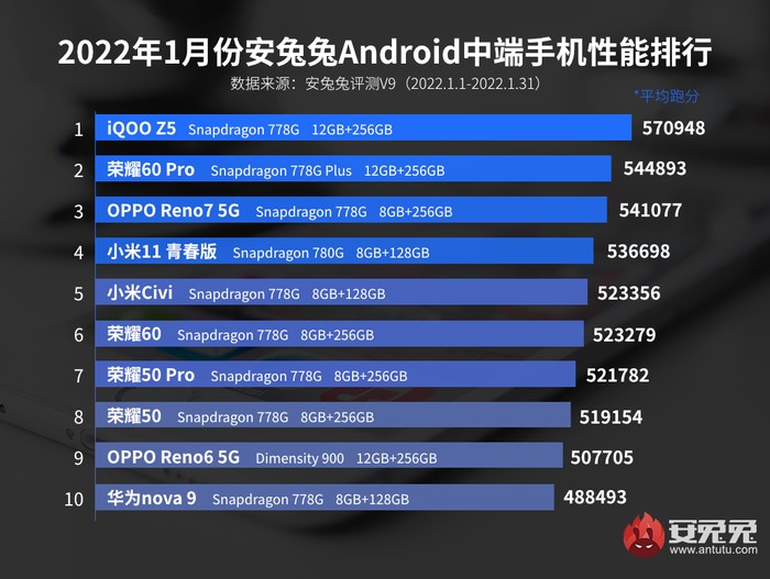 Daftar lengkap 10 HP Android kelas menengah terkencang di dunia periode Januari 2022. Ada ponsel kalian di daftar ini detikers? Foto: AnTuTu