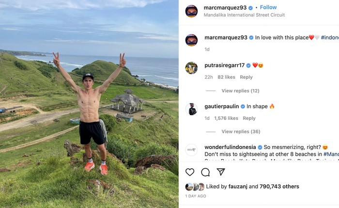 2. Marc Marquez: Foto Marc Marquez lain di Lombok ini juga terpopuler nomor dua, dengan Like sebanyak 790 ribu. Foto: Instagram