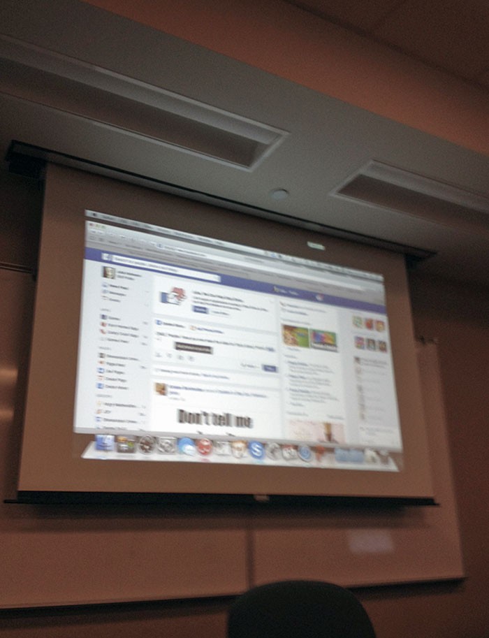 Dosennya lupa untuk mematikan koneksi dengan proyektor sebelum berseluncur di Facebook. Foto: dstryker120 via Bored Panda