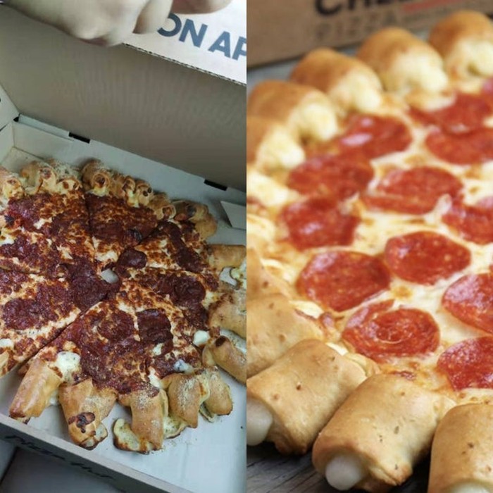 Pizza saat diterima vs di gambar. Foto: Reddit