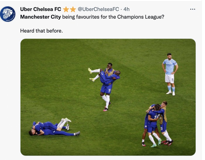 Tapi bagi mereka yang sudah yakin City akan menang Liga Champions, jangan jumawa. Ingat, dulu City keok lawan Chelsea di final. Foto: Twitter