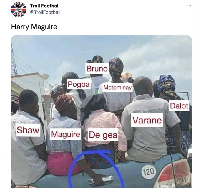 Tapi masih ada pula meme yang mengejek Maguire. Di sini digambarkan dia akan membuka pintu bak mobil dan akan membuat para rekannya celaka, menggambarkan rentannya pertahanan MU dengan dia menjadi titik lemah. Foto: Twitter