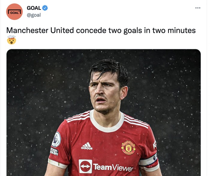Momen Maguire sempat terpuruk setelah MU kebobolan dua gol balasan hanya dalam waktu dua menit. Foto: Twitter