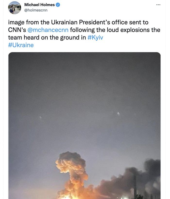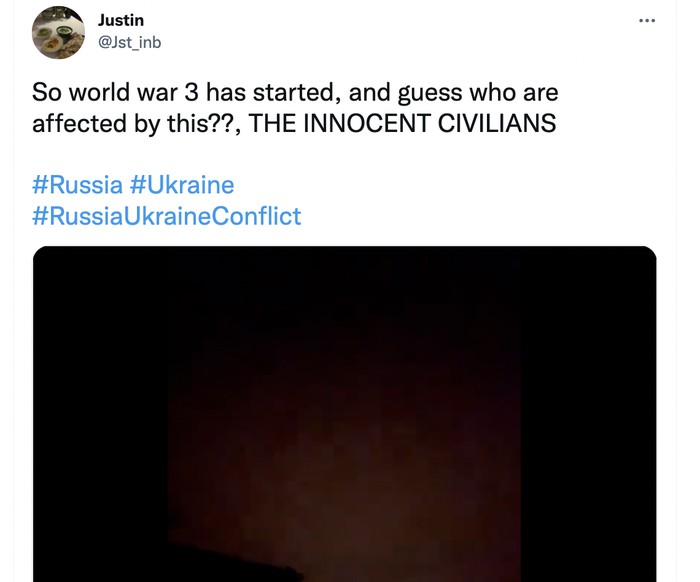 Foto-foto mengenai serangan Rusia juga mulai banyak berseliweran di linimasa Twitter. Foto: Twitter