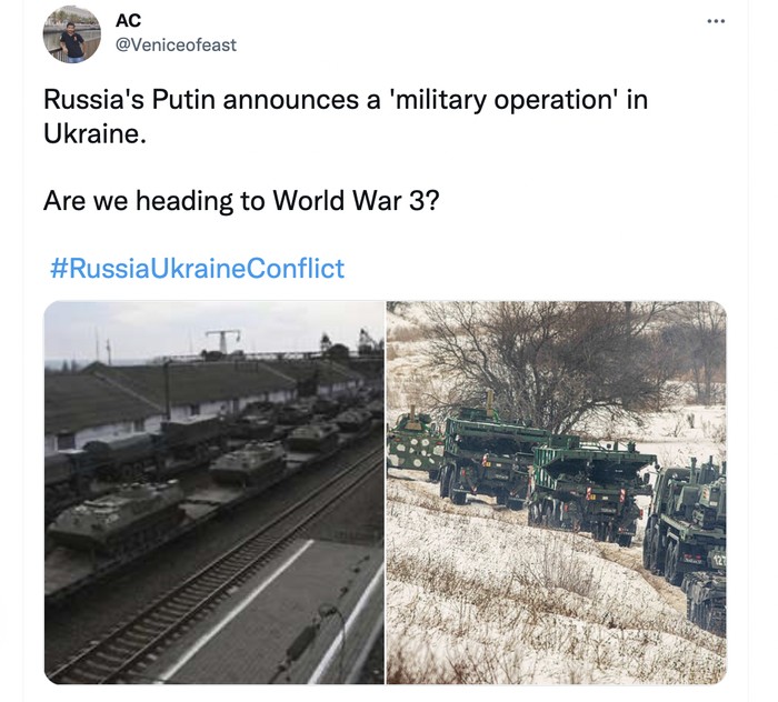 Netizen ini bertanya-tanya apakah invasi Rusia ke Ukraina benar-benar akan menjadi awal Perang Dunia 3. Foto: Twitter