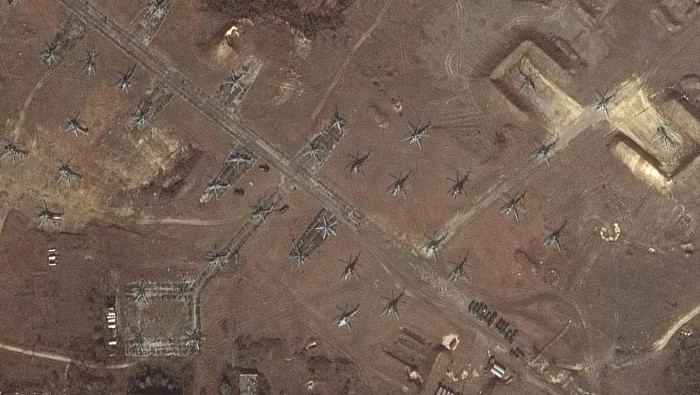 Foto helikopter di Belgorod, Rusia pada 13 Februari 2022. Foto diambil dari satelit Maxar Technologies (Maxar Technologies)
