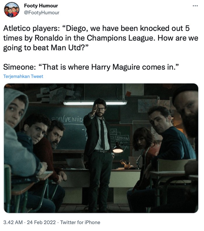 Taktik Simeone bobol gawang De Gea lewat Maguire. Foto: Twitter