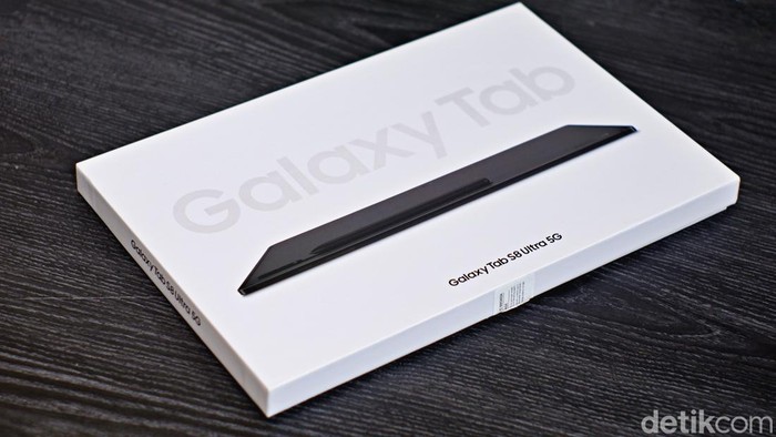 Kendati ukurannya besar, Samsung membuat kotak kemasan Galaxy Tab S8 Ultra tipis. Sebab tidak ada charger yang disertakan di dalamnya. Foto: Adi Fida Rahman/detikINET