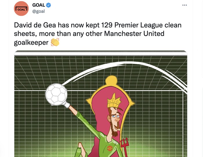 David De Gea kembali kokoh menjaga gawang MU dan mencatat clean sheet terbanyak dalam sejarah MU di Liga Inggris. Foto: Twitter