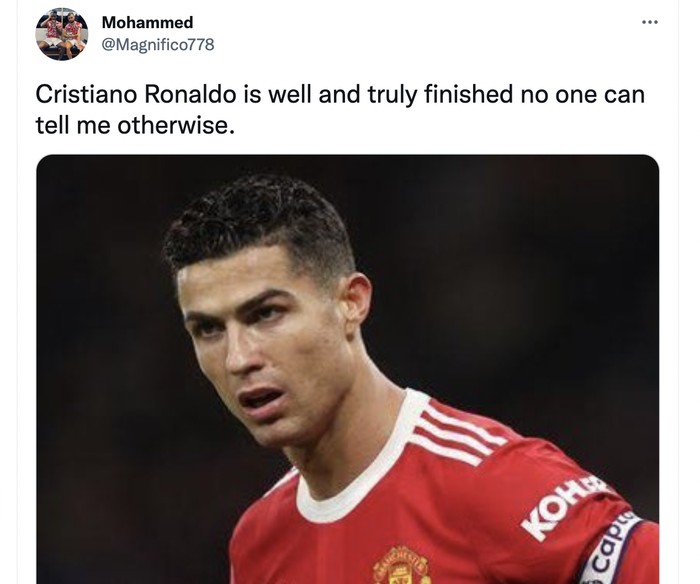 "Ronaldo benar-benar sudah tamat dan tidak ada yang bisa mengubah pendapatku ini," tulis netizen ini di Twitter. Foto: Twitter