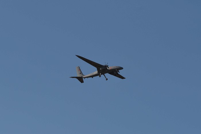 Terbang perdana pada tahun 2014,Β BayraktarΒ TB2 semakin mumpuni kemampuannya. Ia dapat membawa persenjataan sampai 150 kilogram dan melancarkan serangan terhadap tank ataupun bunker lawan. Foto: Bayraktar