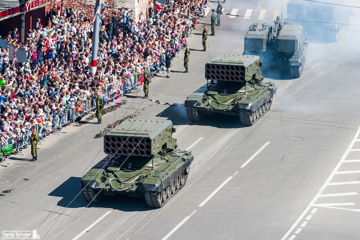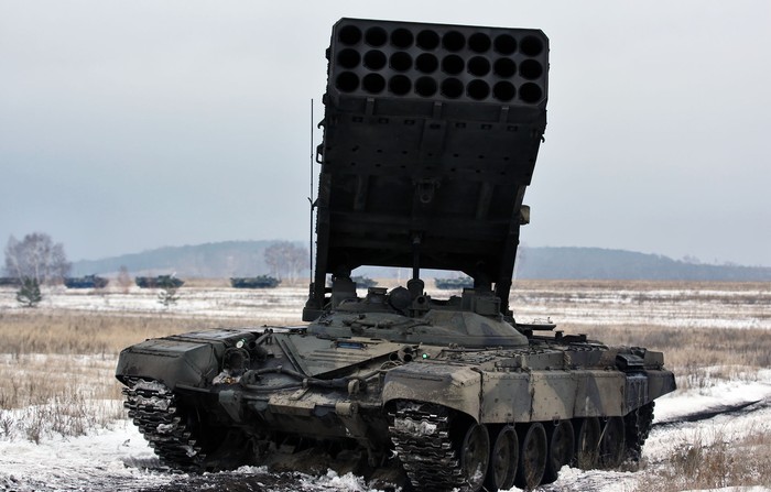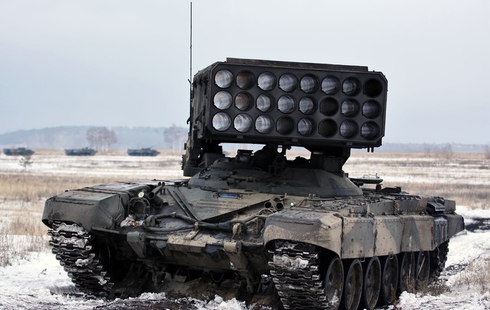 "Rentetan roket TOS-1 akan melenyapkan apapun dalam jarak antara 200 sampai 300 meter dari zona ledakan," kata pakar militer Sebastian Roblin. Foto: Wikipedia