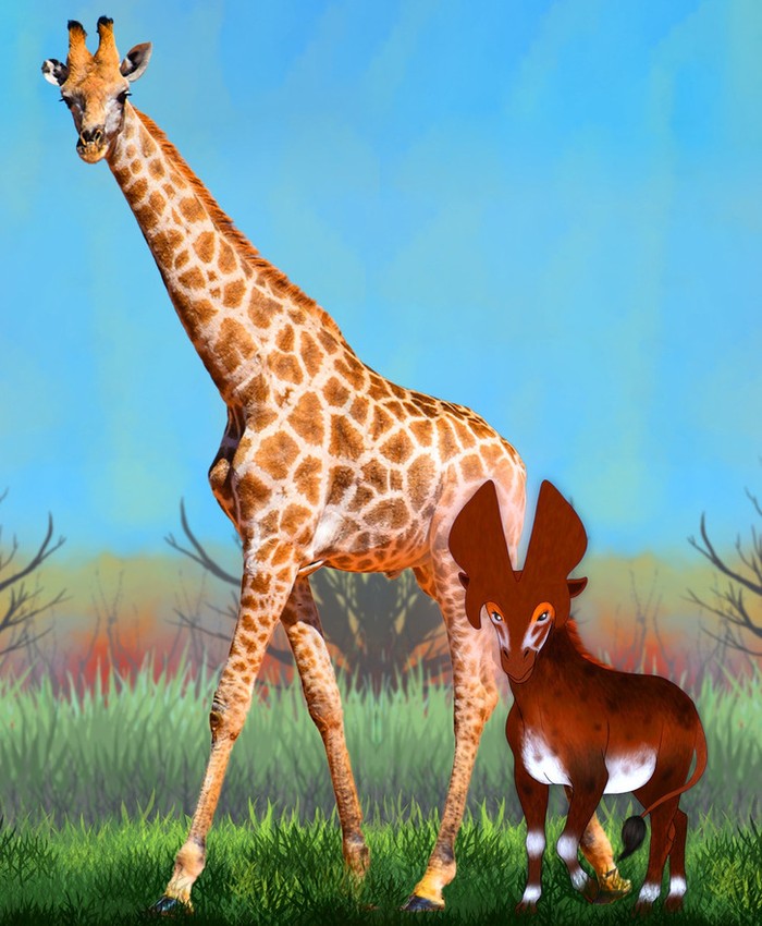 Kakek jerapah, Prolibytherium , adalah hewan yang berukuran 1,80 meter, lebih mirip dengan rusa. Baik jantan maupun betina memiliki set tanduk yang benar-benar aneh, pelat lebar berbentuk daun untuk jantan, dan yang ramping, yang tampak lebih normal untuk betina. Foto: Brightside
