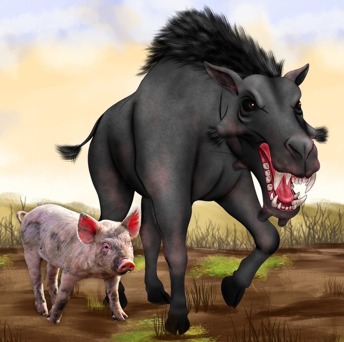 Di masa lalu, babi jauh lebih besar, lebih kuat, dan tampak menakutkan. Mereka memiliki taring besar untuk menaklukan mangsa, Entelodon sangat condong ke gaya hidup predator. Foto: Brightside