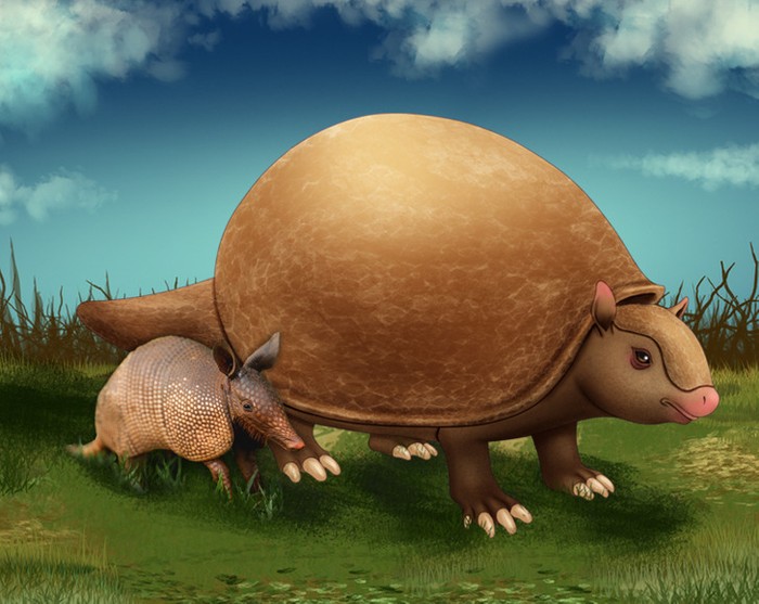 Nenek moyang armadillo modern, Glyptodon , kira-kira berukuran sama dan beratnya sama dengan Volkswagen Beetle . Foto: Brightside