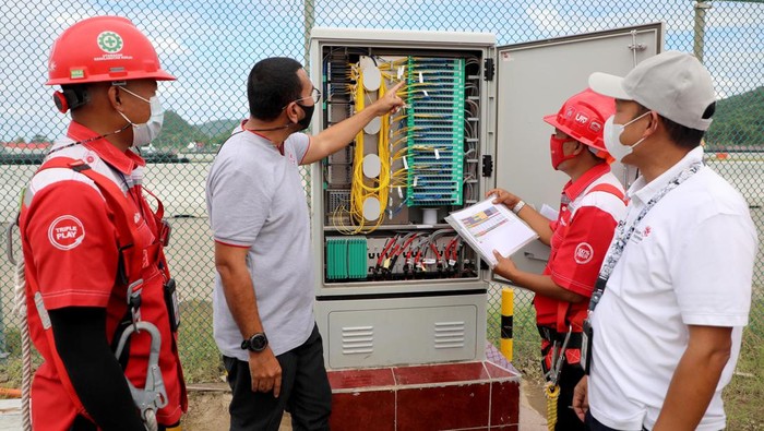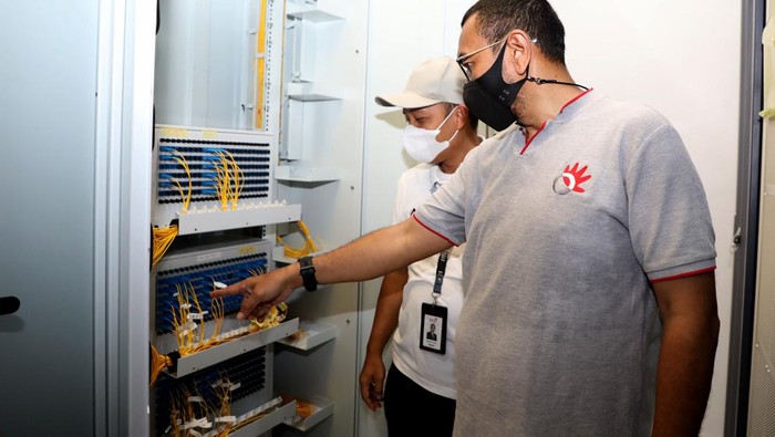 Komisaris Telkom Arya Sinulingga (paling kiri) didampingi Deputy Executive Vice President Telkom Regional V Area Jawa Timur, Bali, Nusa Tenggara Ambari (kanan) saat meninjau kesiapan infrastruktur telekomunikasi TelkomGroup di area Sirkuit Mandalika. TelkomGroup menjamin kesiapan infrastruktur & layanan ICT yang andal guna memastikan kesuksesan penyelenggaraan event internasional MotoGP yang akan digelar dalam waktu dekat.