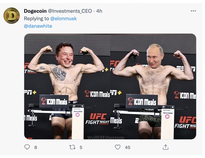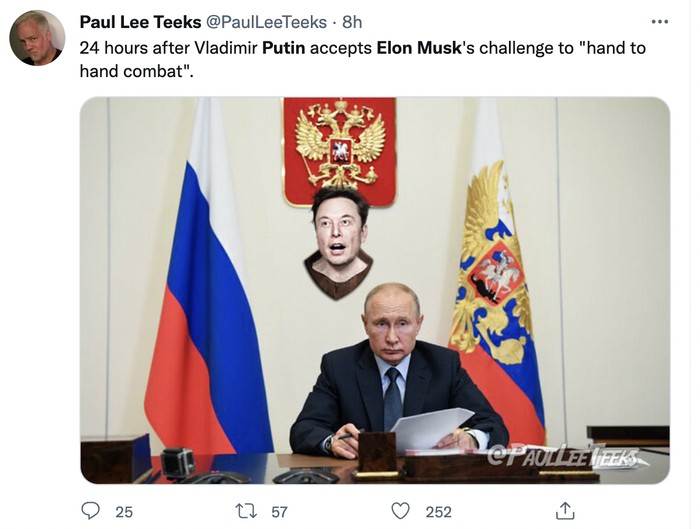Mungkin seperti ini gambaran jika Musk dan Putin benar-benar adu jotos. Foto: Twitter