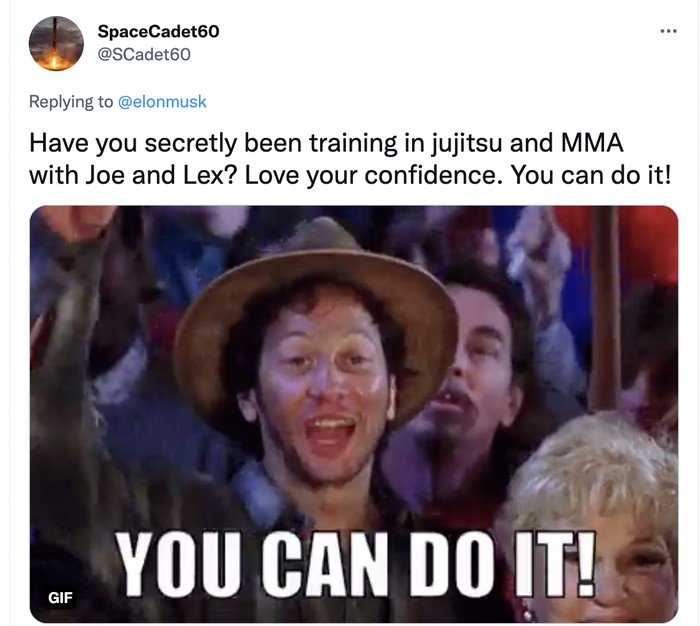 "Saya suka kepercayaan diri Anda, Musk. Anda bisa melakukannya," tulis netizen ini, memberi semangat. Foto: Twitter
