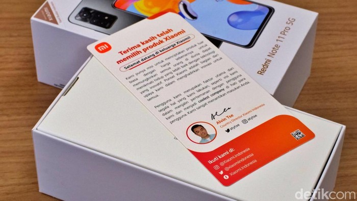Menjadi ciri khas HP Xiaomi, selalu ada kartu ucapan dari Alvin Tse, Country Director Xiaomi Indonesia. Foto: Adi Fida Rahman/detikINET