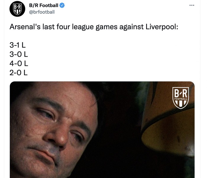 Dalam 4 pertandingan terakhir melawan Liverpool di Liga Inggris, Arsenal kalah melulu. Foto: Twitter