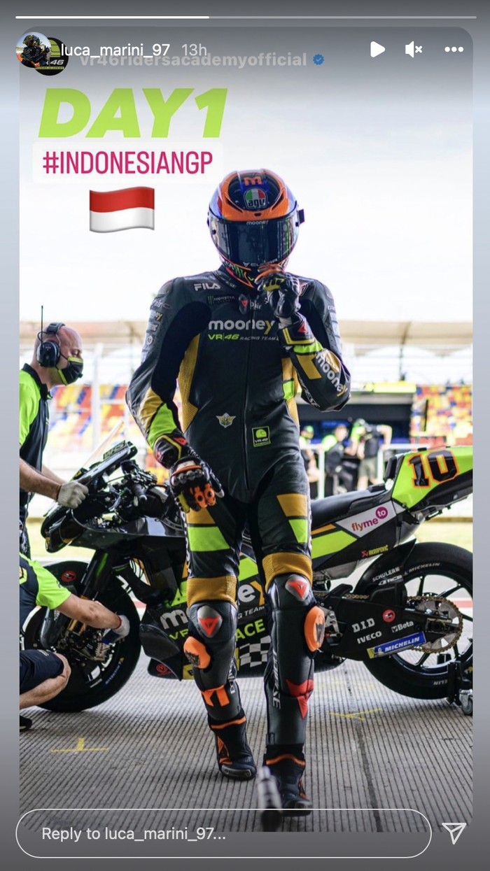 Adik legenda MotoGP Valentino Rossi, Luca Marini usai menjajal sesi latihan bebas di Sirkuit Mandalika. Foto: Instagram