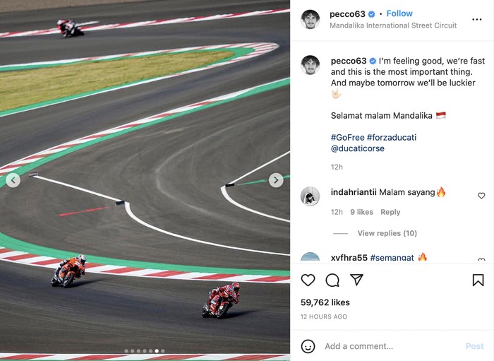 Francesco Bagnaia berharap tuah keberuntungan datang kepadanya. Foto: Instagram