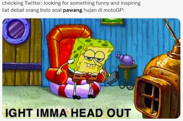 Perdebatan panjang lebar dan pro-kontra soal pawang hujan, bikin Spongebob bosan. Foto: Twitter